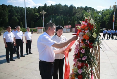 參觀結(jié)束后,全體人員來到五大書記銅像前,莊嚴(yán)肅立,奏唱國歌。公司黨委書記、董事長(zhǎng)許緘濤,黨委副書記、總經(jīng)理田偉共同向五大書記雕像敬獻(xiàn)花籃并行鞠躬禮。在田偉帶領(lǐng)下,大家面向黨旗,重溫入黨誓詞,一同感受毛澤東等老一輩革命家胸懷天下、一心為民的家國情懷。