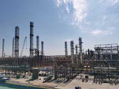 乙醇裝置全部塔器的吊裝收官,為該裝置后續(xù)的安裝、試車工作打下了堅實的基礎(chǔ),也是整個乙醇裝置如期實現(xiàn)中交的重要拐點!(通訊員/朱清偵攝/朱清偵)