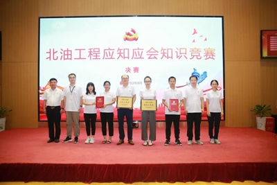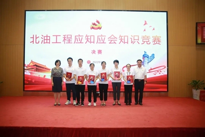 為慶祝中國共產(chǎn)黨成立101周年,持續(xù)激發(fā)廣大黨員、干部學(xué)習(xí)熱情,8月2至3日,北京石油化工工程有限公司黨委、工會(huì)聯(lián)合舉辦了為期兩天的應(yīng)知應(yīng)會(huì)知識(shí)競(jìng)賽活動(dòng)。本次知識(shí)競(jìng)賽共有13支代表隊(duì),共52名選手參賽。公司黨委副書記、總經(jīng)理田偉為大賽致辭,黨委副書記、工會(huì)主席景建民,黨委委員、紀(jì)委書記馬春寧,副總經(jīng)理羅杰,總經(jīng)理助理?xiàng)畹[,黨委委員、黨群工作部(黨委組織部)部長張娜出席了比賽并為獲獎(jiǎng)選手頒獎(jiǎng)。