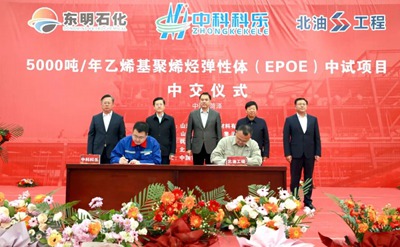 11月18日,由北京石油化工工程有限公司總承包的東明中油燃料石化有限公司5千噸/年乙烯基聚烯烴彈性體(EPOE)中試項目順利中交,標志著項目全面由建設階段轉入試運行準備階段。