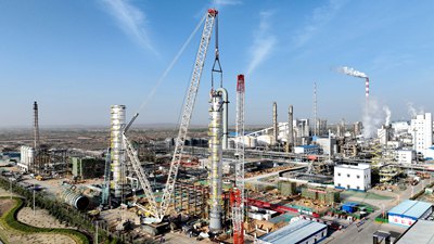 4月22日,由北京石油化工工程有限公司EPC總承包的陜西延長石油榆林凱越煤化有限責任公司50萬噸/年甲醇制乙醇項目首臺塔器設備——脫脂塔順利完成吊裝作業(yè)并精準就位。