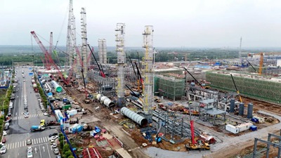 當(dāng)前項(xiàng)目建設(shè)正值大件設(shè)備吊裝、鋼結(jié)構(gòu)安裝的高峰期,土建基本全部施工完成;現(xiàn)場(chǎng)各個(gè)作業(yè)面人頭攢動(dòng)、工程機(jī)械忙碌運(yùn)轉(zhuǎn)、焊接點(diǎn)弧光閃耀,呈現(xiàn)出一片熱火朝天的景象。為確保各項(xiàng)關(guān)鍵節(jié)點(diǎn)順利完成,項(xiàng)目部從設(shè)計(jì)、采購(gòu)、施工各方面建立管理高效的協(xié)調(diào)機(jī)制,強(qiáng)化與業(yè)主、監(jiān)理單位、施工單位的項(xiàng)目問題每日溝通協(xié)作,共同解決項(xiàng)目執(zhí)行過(guò)程中的各類問題。目前,項(xiàng)目總體完成56% 其中設(shè)計(jì)完成100%、采購(gòu)69%、施工35%,關(guān)鍵設(shè)備貨基本完成,管道90%材料已開始發(fā)運(yùn)到現(xiàn)場(chǎng),長(zhǎng)周期設(shè)備全部到項(xiàng)目現(xiàn)場(chǎng),大件設(shè)備吊裝完成60%,關(guān)鍵設(shè)備之一的三臺(tái)離心式壓縮機(jī)開始就位安裝。
