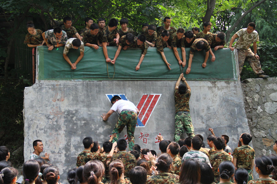 團隊項目中,103名隊員僅用了29分鐘就成功翻越了4.3米高的畢業(yè)墻,團隊的勝利使畢業(yè)生們體驗到集體的力量,體會到甘于奉獻的偉大,樹立了相互支持、精誠團結的團隊精神和合作意識。