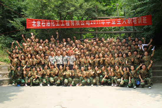 “我有無限潛能,我為成功而來;勇敢面對每一次挑戰(zhàn),提升自我,超越自我;相信自己,更信任伙伴;尊重自我,更敬重他人;時刻與團隊在一起,因團隊有我而自豪……”,7月13日,在宏亮的營訓宣誓中,拉開了北京工程公司2011年畢業(yè)生素質(zhì)拓展訓練的帷幕。此次拓展訓練歷時兩天,共分為三個主題:挑戰(zhàn)、協(xié)作和團隊。